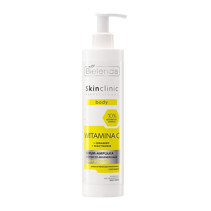 Bielenda Skin Clinic Professional Nourishing & Regenerating Body Serum Ampoule with Vitamin C is an innovative, treatment-inspired formula developed for skin that needs intensive nourishment, regeneration, and radiance. Powered by the 10% Regenboost Complex, this advanced serum restores vitality, smoothness, and a healthy glow.