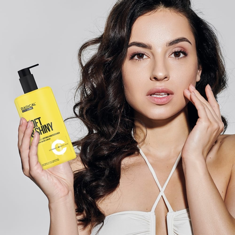 The Radical Hair Clinic Soft & Shiny Conditioner has been specially developed for dry, dull, and brittle hair in need of advanced care. Inspired by the skinification trend, it combines scalp and hair treatment with active ingredients known for their moisturising, strengthening, and shine-restoring properties.
