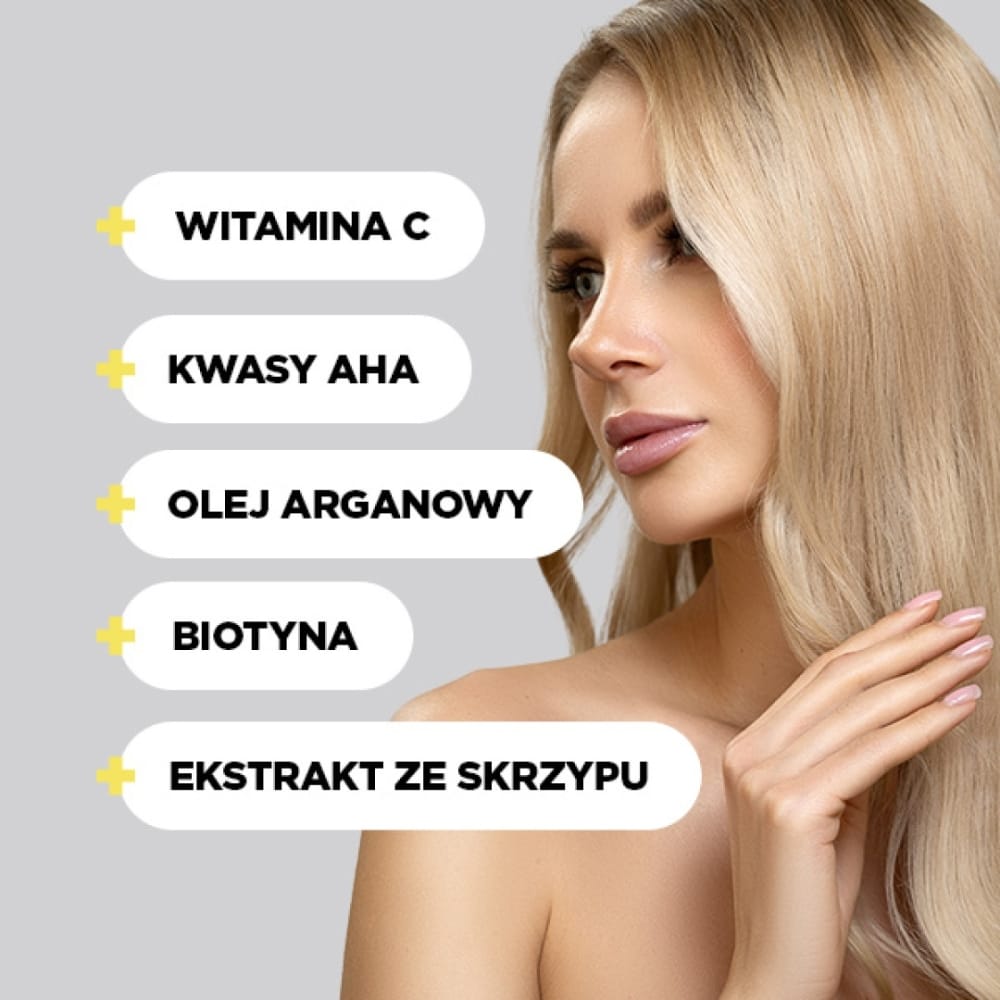 - Biotin (Vitamin B7) – Reinforces the hair structure and helps reduce breakage.