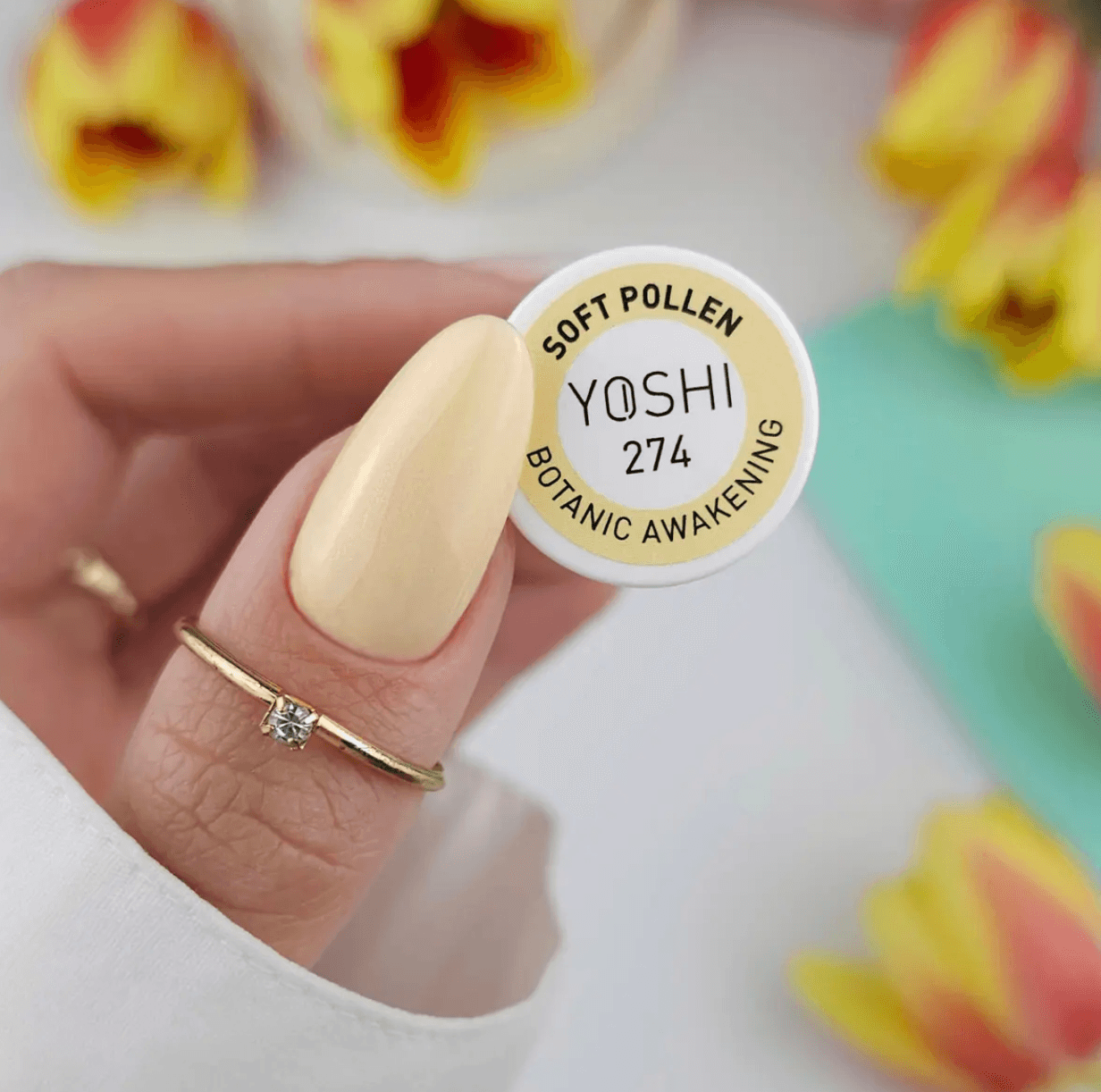 274 Soft Pollen – A warm, pastel yellow with a golden undertone. Soft and radiant, it subtly brightens the hands.